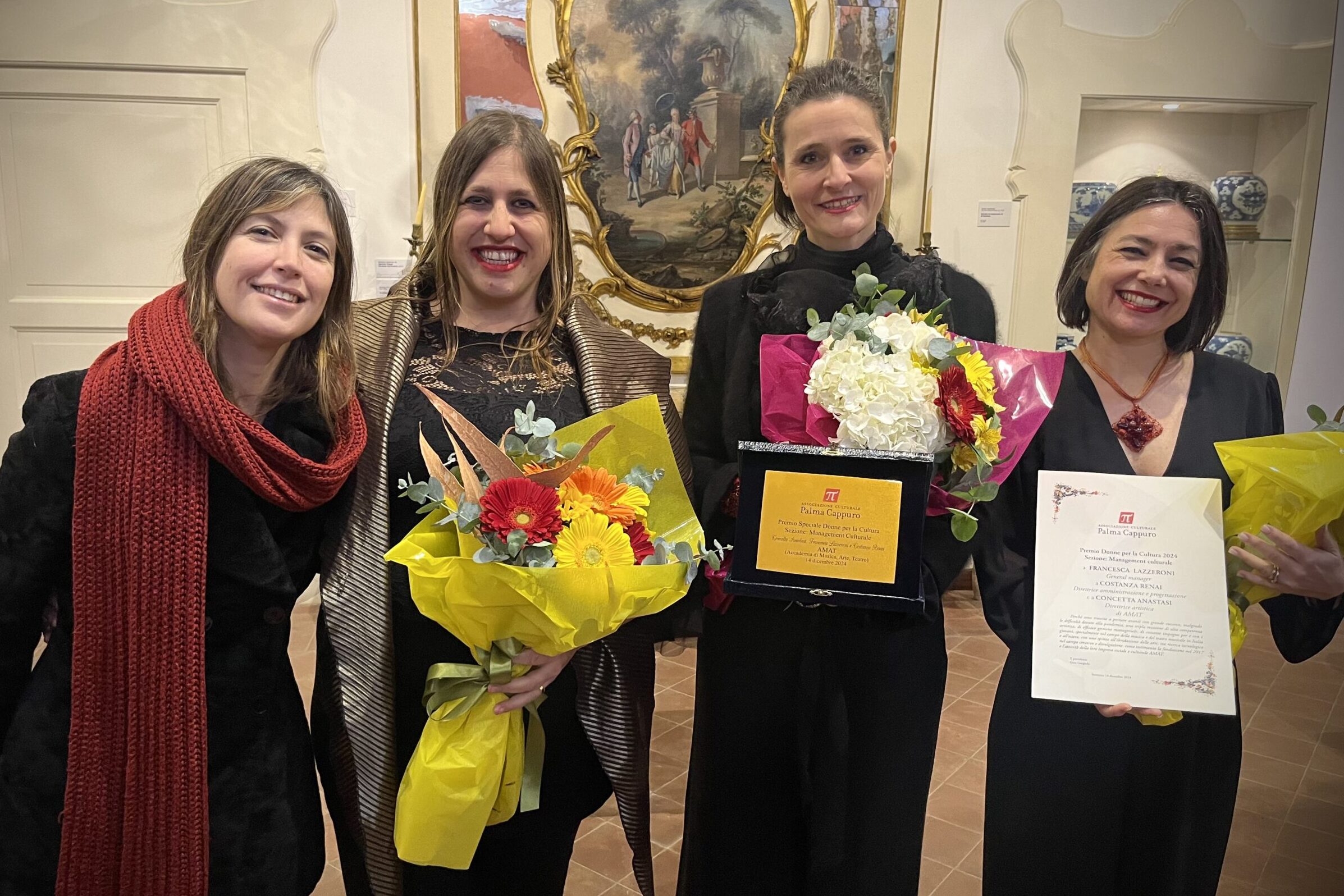 AMAT (Accademia Musica Arte Teatro), impresa culturale senese, ormai lanciata sia sul territorio nazionale che internazionale, e le tre Socie Francesca Lazzeroni, Concetta Anastasi e Costanza Renai hanno ricevuto ieri (sabato 14 dicembre) a Sorrento (Napoli) il Premio “Palma Cappuro “Donne per la Cultura 2024” per la sezione “Management Culturale”.