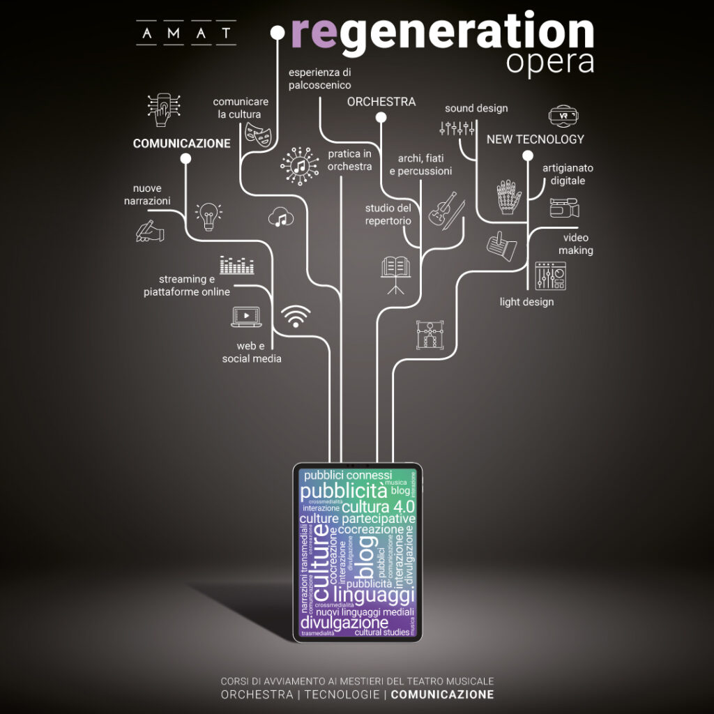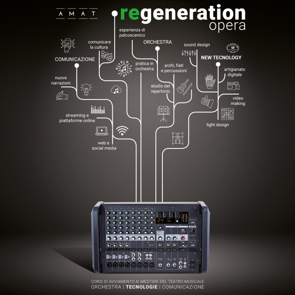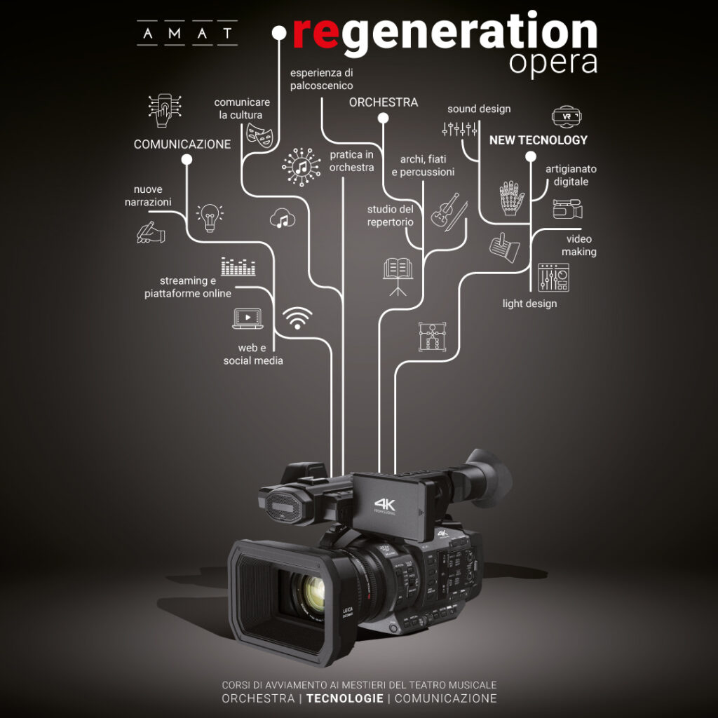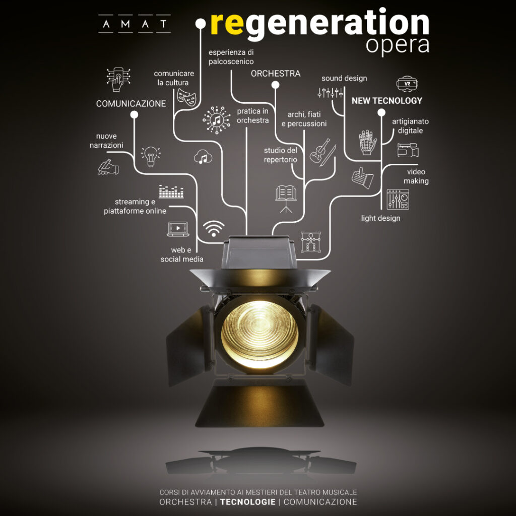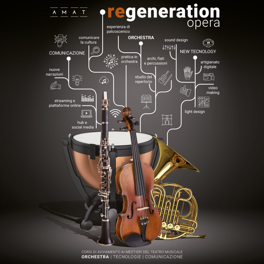 Sono tante le professionalità legate al teatro musicale e ognuna ha i suoi segreti.Amat offre la possibilità di partecipare a percorsi formativi pratici per avviare ai mestieri legati al teatro musicale: dall’orchestra, al video-making, al sound design, al light design, alla comunicazione (anche social). I ragazzi potranno fare esperienza diretta di una produzione vera e propria, dalla progettazione alla messa in scena in teatro.