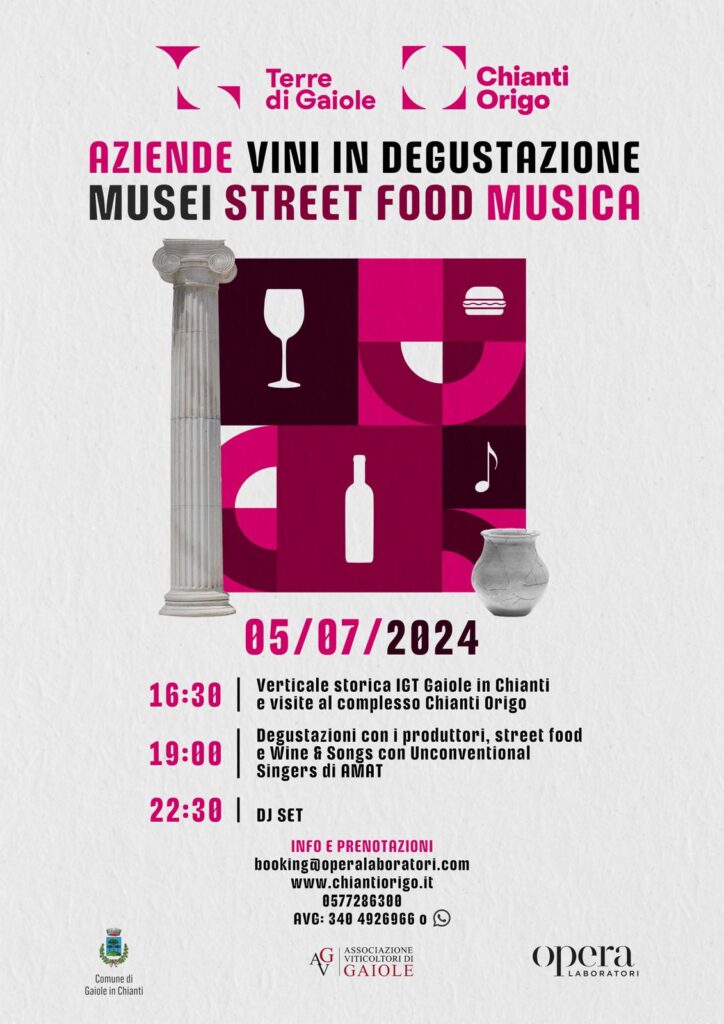 Venerdì 5 luglio a Gaiole in Chianti si terrà la prima edizione dell’evento Terre di Gaiole, una serata dedicata al vino, con le aziende dell’Associazione Viticoltori di Gaiole, alla cultura, con le visite guidate al Complesso Chianti Origo e al divertimento.