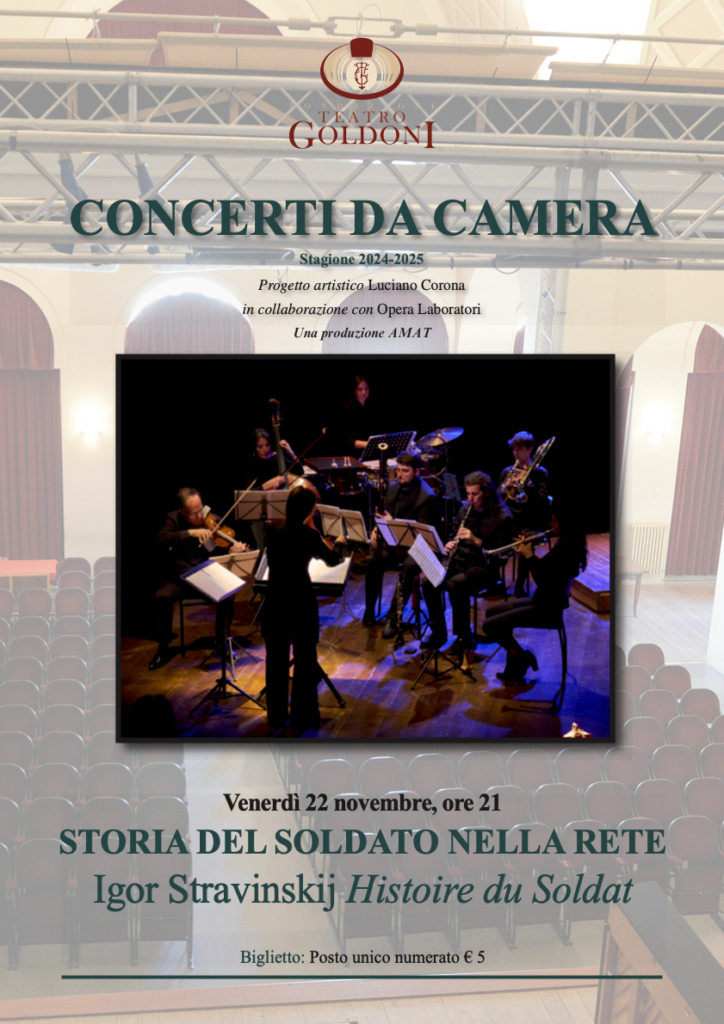 Oggi, 22 novembre 2024 alle ore 21.00 presso la Goldonetta, AMAT propone la Storia del Soldato di Stravinskij per la rassegna di concerti da camera del Teatro Goldoni di Livorno.