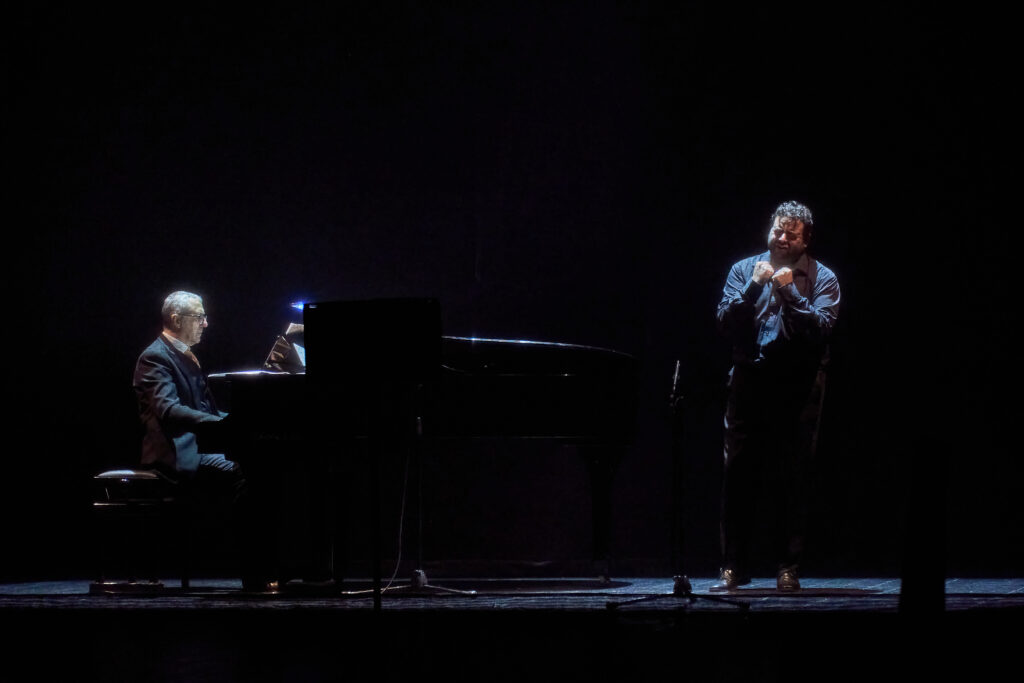 Un pubblico rapito ha applaudito con commozione la mise en espace scritta da Chiara Alivernini e Swan Bergman, un viaggio onirico attraverso la parola e il canto, che scava nella vita dell’uomo e del cantante.