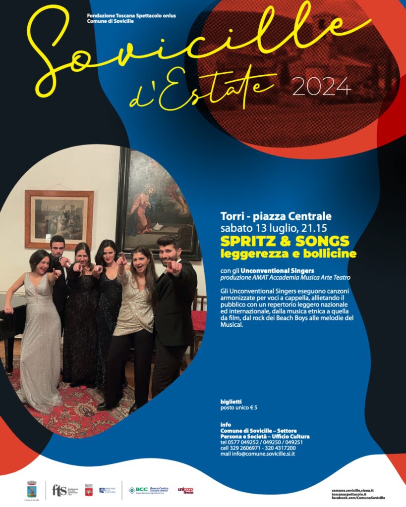 Gli Unconventional Singers in concerto a Firenze, giovedì 18 luglio, al Giardino della Catena. In programma un “aperitivo” musicale frizzante…